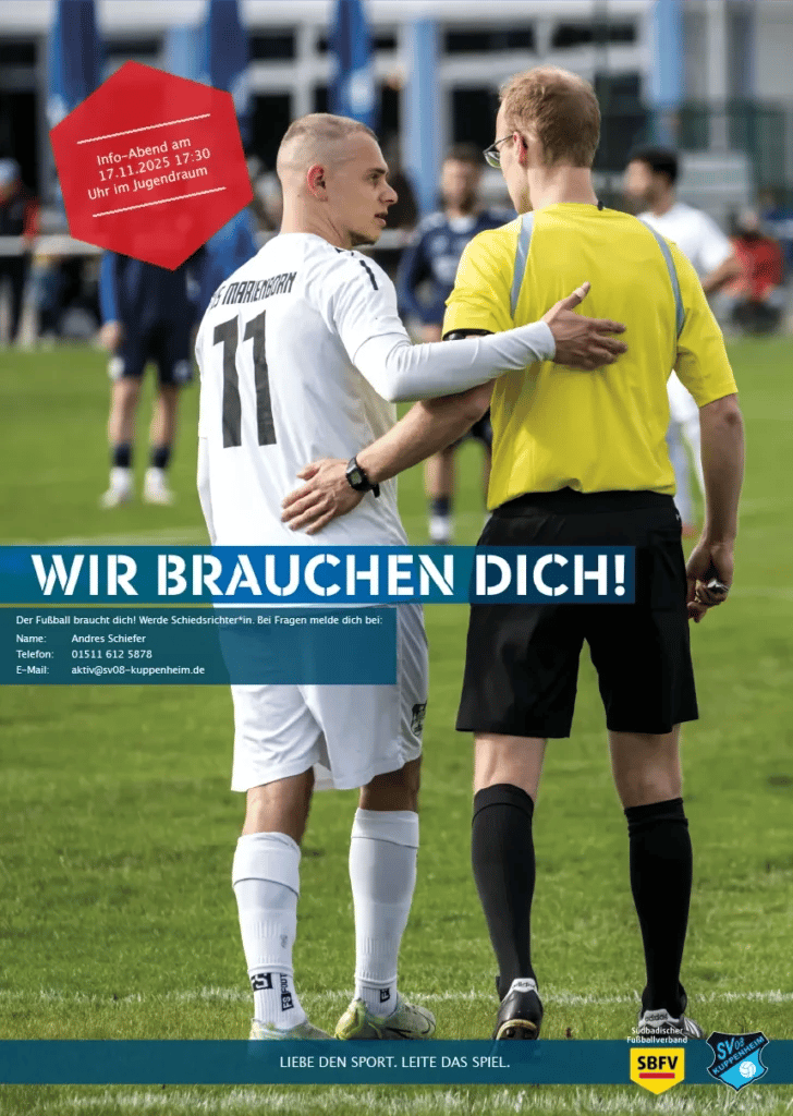 Sie sorgen für Fairness, Leidenschaft und Teamgeist auf dem Platz – und genau dich brauchen wir dafür!